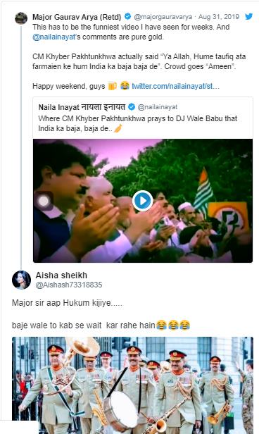 पाकिस्तानी नेता का वीडियो वायरल होने के बाद लोग खूब मजे रहे हैं। खुद पाकिस्तानी की मशहूर पत्रकार नायला इनायत ने सीएम के खिलाफ मजेदार तंज कसा। अपने वीडियो ट्वीट में उन्होंने लिखा, ‘जहां खैबर पख्तूनख्वाह के सीएम डीजे वाले बाबू से प्रार्थना कर रहे हैं कि इंडिया का बाजा, बजा दे।’