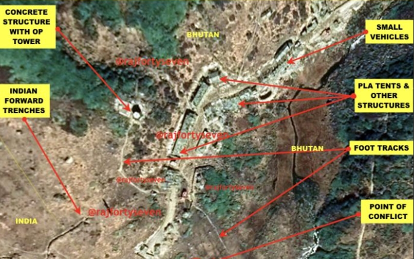 गूगल अर्थ की मदद से निकाली गई तस्वीरें स्पष्ट करती हैं कि इस क्षेत्र में ढेर सारी चीनी बेड़े तैनात हैं। जेडबीएल-09 आईएफवी या इंफैंट्री लड़ाकू वाहनों की इस जगह पर होने की आशंका है। दो छोटे टैंकों के लिए पार्किंग एरिया की व्यवस्था भी की गई है। इन तस्वीरों में डोकलाम पठार पर दो रेजिमेंट नजर आती हैं। यही नहीं, वहां सेना की बड़ी टुकड़ी (जिसमें 100 से अधिक सैनिक)/हथियारों से लैस वाहन भी तैनात हैं। चार बुल्डोजर और चार टिपर भी यहां होने की पुष्टि की गई है। तस्वीरों में इन वाहनों का होना इस ओर संकेत देता है कि चीन वहां पर आगे सड़क बनाने की कोशिशों में जुटा है। बताया जा रहा है कि कई टुकड़ियां तो टेंट के भीतर तैनात की गई हैं, जो सैटेलाइट तस्वीरों में नहीं लोकेट की जा सकी हैं।