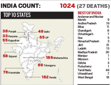 भारत में कोरोनावायरस से पिछले 24 घंटों में छह मौतें हुईं हैं, जबकि 106 पॉजिटिव मामले छह राज्यों से सामने आए हैं। स्वास्थ्य मंत्रालय का कहना है कि वह हॉट स्पॉट्स (जहां संक्रमण फैलने की अधिक आशंका) की शिनाख्त की कोशिश में जुटा है।