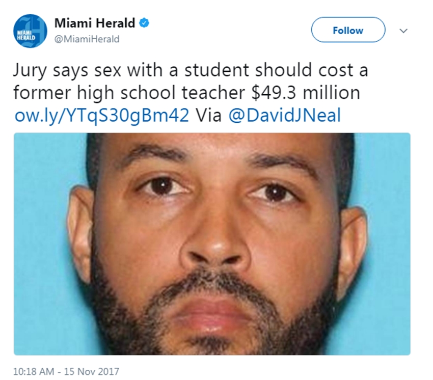 मियामी हेरार्ड के मुताबिक इस मामले में ज्यूरी ने फैसला सुनाते हुए कहा कि आरोपी को नौ लाख तीन हजार नौ सौ तेंतीस रुपए पीड़ित छात्रा को पहले के चिकित्सा खर्चों के तौर पर देने होंगे। जबकि, एक करोड़ 65 लाख 75 हजार 51 रुपए उसके भविष्य की चिकित्सा खर्चों के रूप में देने पड़ेंगे। 26 करोड़ रुपए मानसिक पीड़ा और दुख के लिए और तकरीबन 94 करोड़ रुपए भविष्य की मानसिक पीड़ा और दुख के लिए चुकाने होंगे।