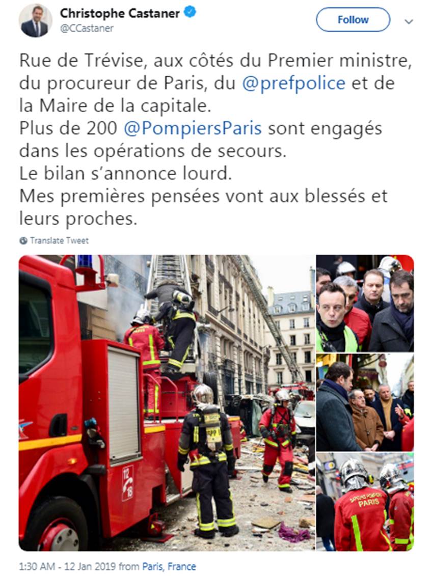 घटना की जानकारी मिलने के कुछ ही देर बाद प्रधानमंत्री एडवर्ड फिलीप, गृह मंत्री क्रिस्टोफ कैस्टेनर समेत मेयर एनी हिडाल्गो मौके पर पहुंचे, जहां उन्होंने हालात का जायजा लिया। घटना के बाद लगभग 200 अग्निशमनकर्मियों ने मोर्चा संभाला था।
