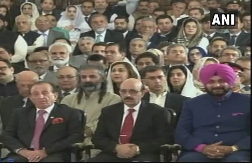 Imran Khan Swearing-In Ceremony, Prime Minister of Pakistan, Tehreek-e-Insaf (PTI) chairman: पाकिस्तान तहरीक-ए इंसानफ पार्टी (PTI) के प्रमुख इमरान खान ने शनिवार (18 अगस्त, 2018) को पाकिस्तान के प्रधानमंत्री पद की शपथ ली। राष्ट्रपति ममनून हुसैन ने इमराम खान को इस्लामाबाद स्थित राष्ट्रपति भवन में शपथ दिलाई। शपथ ग्रहण समारोह में कई मशहूर हस्तियां मौजूद थीं। इस दौरान कांग्रेस नेता और पूर्व क्रिकेटर नवजोत सिंह सिद्धू भी समारोह में मौजूद रहे। नवजोत सिंह सिद्धू को शपथ ग्रहण समारोह में जो सीट दी गई उसे लेकर नया विवाद खड़ा हो गया है। नवजोत सिंह सिद्धू को पाक अधिकृत कश्मीर (PoK) के राष्ट्रपति मसूद खान की बगल में बिठाया गया। इस पर कई लोगों ने आपत्ति जताई है और ट्विटर पर बवाल मच गया है। जम्मू-कश्मीर कांग्रेस प्रमुख गुलाम अहमद मीर ने इस ममाले को लेकर कहा, “वह एक जिम्मेदार नेता हैं। इसका जवाब सिर्फ वही दे सकते हैं लेकिन वह इसे टाल भी सकते थे।”