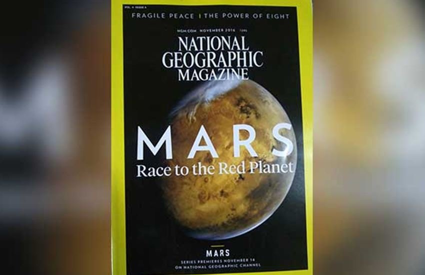 मंगलयान द्वारा खींची गई मंगल ग्रह की एक तस्वीर को नेशनल जियोग्राफिक की जानी-मानी मैगजीन के फ्रंटपेज पर जगह मिली है। 2000 रुपए के नए गुलाबी नोट पर जगह पाने के बाद भारत के मंगलयान द्वारा पाया गया यह एक और बड़ा मुकाम है। इसके साथ ही मंगलयान ने इस हफ्ते ही ऑर्बिट में अपने तीन साल पूरे कर लिए हैं। मंगलयान से पहले दुनियाभर के देशों ने मंगल के लिए लगभग 50 से ज्यादा मिशन किए। लेकिन कोई भी मंगलयान जितनी साफ फोटो नहीं खींच पाया। मंगलयान पर लगे कम कीमत वाले कैमरे ने दर्जन भर तस्वीरें खींची थीं जिनमें से एक को मैगजीन का कवर बनाया गया है।