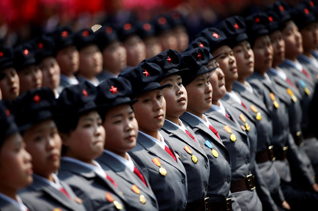 सरकारी टीवी के सीधे प्रसारण में दिखाया गया कि ऑनर गार्ड का निरीक्षण करने के बाद किम ने सेना और पार्टी के शीर्ष नेताओें के साथ किम द्वितीय-संग चौराहे पर चल रही परेड को देखा। किम काला सूट पहने हुए थे। शहर के बीचोंबीच से होकर गुजरती इस परेड में महिला सैनिक भी शामिल थीं। टीवी पर लाइव प्रसारण में एक शख्स ने कहा, ‘यह परेड हमारी शक्तिशाली सैन्य शक्ति को प्रदर्शित करने का मौका देगी।