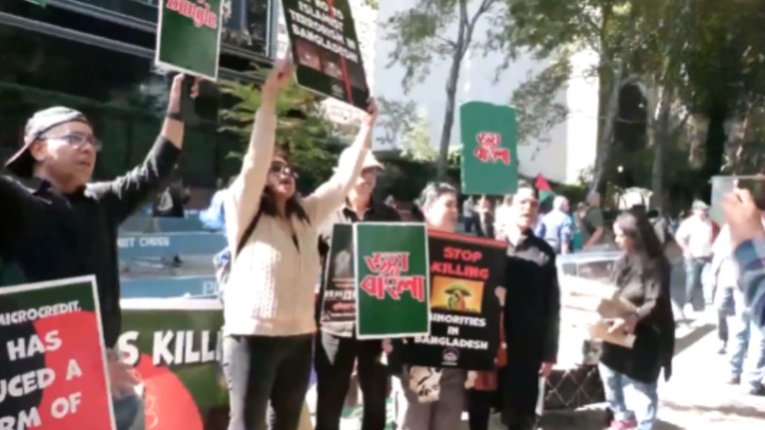 Muhammad Yunus: प्रदर्शनकारी संयुक्त राष्ट्र मुख्यालय के बाहर जमा हुए और "यूनुस पाकिस्तानी हैं। पाकिस्तान वापस जाओ" जैसे नारे लगाए।…
