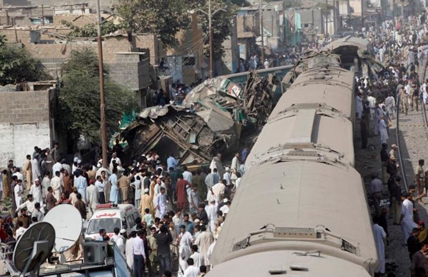 गुरुवार सुबह पाकिस्तान के कराची में एक पैसेंजर ट्रेन एक खड़ी हुई ट्रेन से टकरा गई, जिससे कम से कम 19 लोगों की मौत हो गई और 50 अन्य घायल हो गए। लांढी क्षेत्र के गद्दाफी शहर में गुरुवार सुबह सात बजकर 18 मिनट पर हुई इस दुर्घटना में जकारिया एक्सप्रेस जुमा गोठ ट्रेन स्टेशन पर खड़ी फरीद एक्सप्रेस से टकरा गई। टक्कर के कारण फरीद एक्सप्रेस की दो और जकारिया एक्सप्रेस की एक बोगी पूरी तरह क्षतिग्रस्त हो गर्इं। टीवी फुटेज में डिब्बे आपस में भिड़े हुए और पलटे हुए दिखाई दे रहे थे। फरीद एक्सप्रेस लाहौर से कराची आ रही थी जबकि जकारिया एक्सप्रेस मुल्तान से चली थी।
