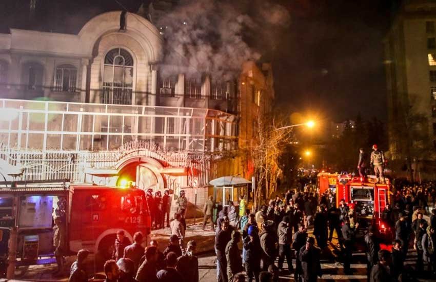 संवाद समिति इरना ने बताया कि दूतावास के भीतर आग की लपटें उठ रही थीं। प्रदर्शनकारी दूतावास के अंदर घुस गए, लेकिन उन्हें बाद में वहां से हटा दिया गया। एक चश्मदीद ने कहा-‘हर जगह पुलिस थी और उसने प्रदर्शनकारियों को तितर-बितर कर दिया। उनमें से कुछ को गिरफ्तार भी कर लिया गया।’ वहां से हटाए जाने से पहले प्रदर्शनकारी दूतावास की छत पर चढ़ गए थे। वेबसाइटों पर दिख रही तस्वीरों में प्रदर्शनकारियों ने सऊदी अरब के झंडे को नीचे उतार दिया।