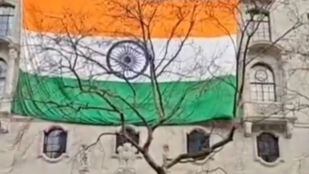 चौक की दीवार के दोनों छोर पर भारत और इजराइल के ध्वज लगे