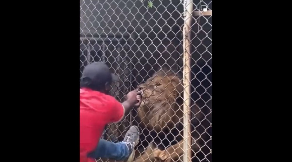 वायरल हो रहा ये वीडियो जमाइका के चिड़ियाघर का बताया जा रहा है। वीडियो में एक शख्स को शेर के पिंजरे के पास खड़े हुए देख सकते हैं। जब सभी लोग शेर के साथ तस्वीरें खींचने और वीडियो बनाने में व्यस्त थे तो वह शख्स शेर के साथ खेलने लगा। शख्स शेर के पिंजरे के बाहर खड़ा होकर पिंजरे अंदर उंगलियां डालकर शेर को तंग करना शुरू कर देता है।