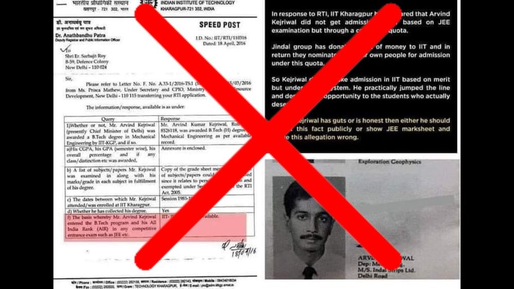 दिल्ली के मुख्यमंत्री अरविंद केजरीवाल आईआईटी जेईई परीक्षा की दी थी। आईआईटी खड़गपुर के एक आरटीआई जवाब के अनुसार, उनकी आईआईटी जेईई रैंक 563 थी। जेईई परीक्षा के माध्यम से आईआईटी में प्रवेश नहीं पाने का वायरल दावा झूठा है।