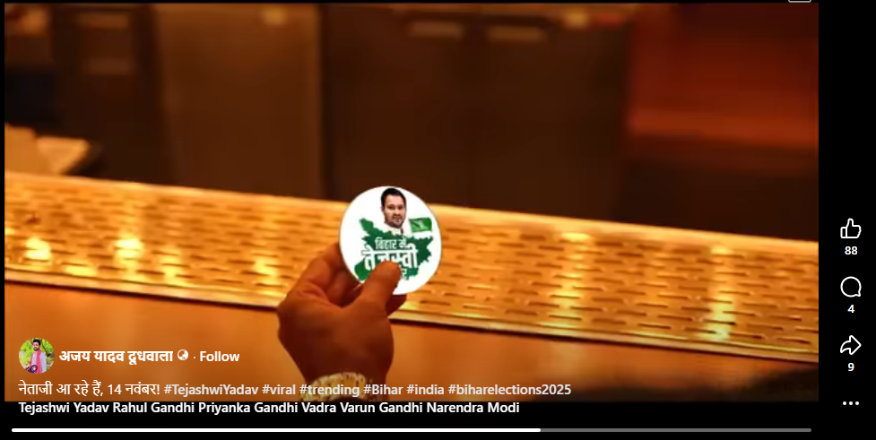 ‘लाइटहाउस जर्नलिज्म’ को अभिनेता मनोज बाजपेयी की एक वीडियो क्लिप मिली। इस क्लिप को सोशल मीडिया पर शेयर किया जा रहा था। इस वीडियो क्लिप में अभिनेता को बिहार चुनावों से पहले राष्ट्रीय जनता दल (Rashtriya Janata Dal – RJD) का प्रचार करते हुए दिखाया गया था।