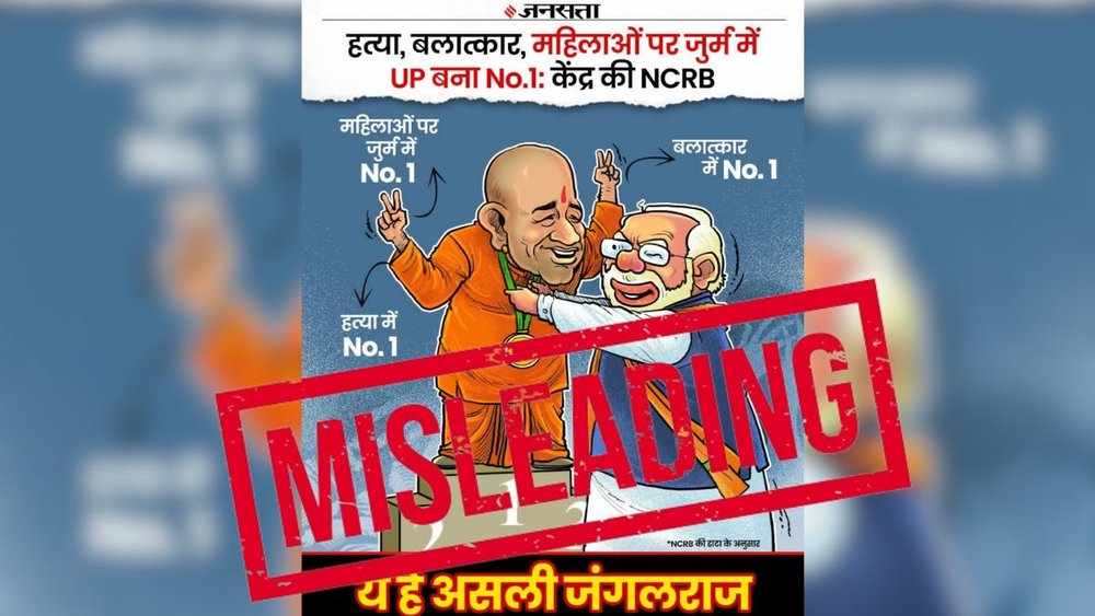 सोशल मीडिया पर एक पोस्ट शेयर हो रहा है। इसमें एक कार्टून है। कार्टून में प्रधानमंत्री नरेंद्र मोदी को उत्तर प्रदेश के मुख्यमंत्री योगी आदित्यनाथ को मेडल पहनाते हुए दिखाया गया है। इसके साथ एनसीआरबी (National Crime Records Bureau) के कुछ आंकड़े लिखे गए हैं। साथ में, देश के प्रमुख दैनिक समाचार पत्रों में से एक, जनसत्ता का नाम व लोगो इस्तेमाल किया गया है। पोस्ट को देख कई लोग ऐसा समझ रहे हैं कि यह कार्टून जनसत्ता में छपा है। कुछ लोग सोशल मीडिया पर ऐसा दावा भी कर रहे हैं। लेकिन, यह सच नहीं है। पोस्ट की पड़ताल में हमने पाया कि दावा भ्रामक है। जनसत्ता ने कार्टून नहीं छापा।