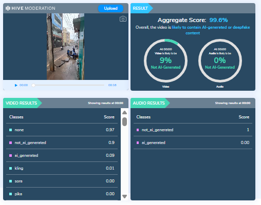 हमने वीडियो को HIVE मॉडर्न से भी गुजारा, जिसने भी यह निष्कर्ष निकाला कि वीडियो में एआई-जनरेटेड सामग्री होने की संभावना है।