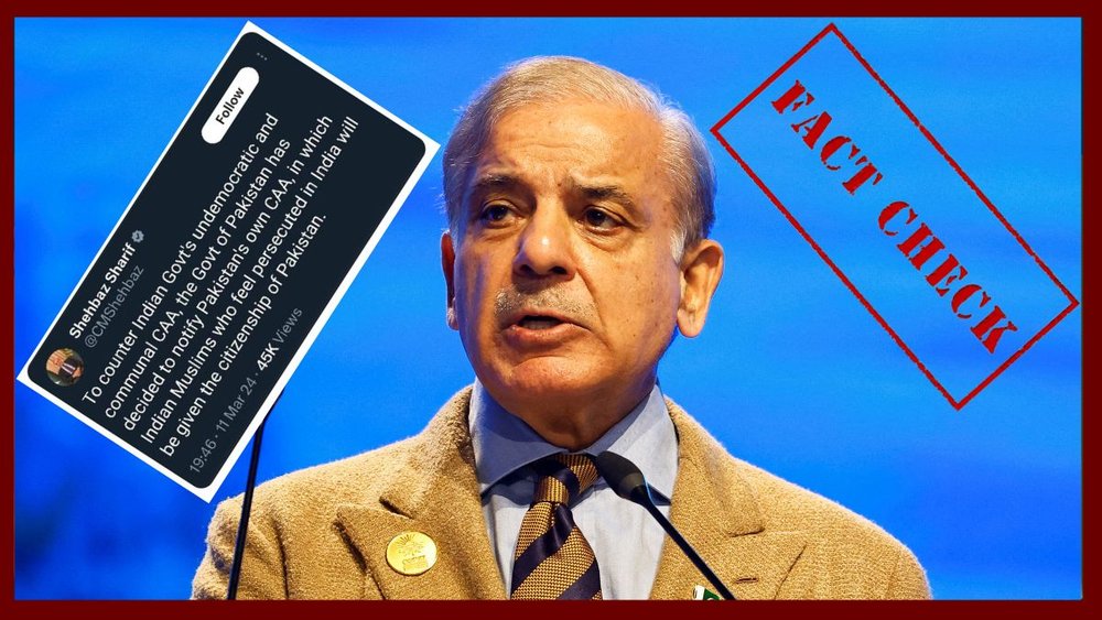 लाइटहाउस जर्नलिज्म को सोशल मीडिया पर पाकिस्तान के पीएम शहबाज शरीफ के नाम से शेयर किए जा रहे एक ट्वीट का स्क्रीनशॉट मिला। केंद्र सरकार ने सोमवार (11 मार्च) को नागरिकता संशोधन कानून (CAA) को लागू किया, जिसके बाद शहबाज़ शरीफ का कथित पोस्ट वायरल है।