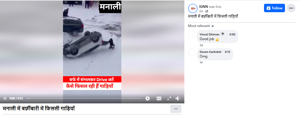 वीडियो के साथ यह दावा किया गया था कि यह भारत के लोकप्रिय पर्यटन स्थल मनाली का है।
