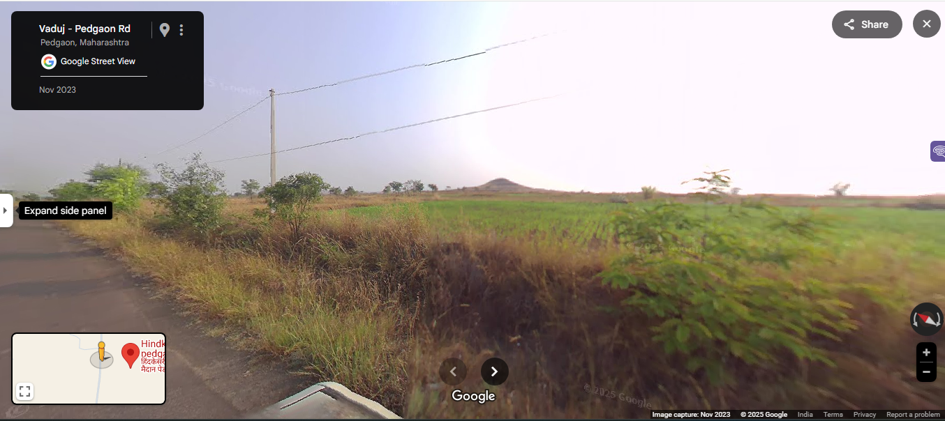 हमने गूगल मैप्स पर ‘हिंदकेसरी पेडगांव मैदान’ भी देखा और इसी तरह की एक पहाड़ी मिली, जहां से लोग बैलगाड़ी दौड़ देखते हैं।