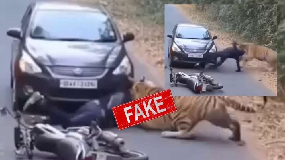 निष्कर्ष: बाइक सवार पर बाघ के हमले का वायरल वीडियो AI-जेनरेटेड है। वायरल दावा फर्जी है।