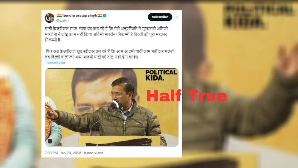दावा किया जा रहा है कि केजरीवाल ये मान लिया है कि उनकी अनुपस्थिति में दिल्ली की मुख्यमंत्री आतिशी मार्लेना ने कोई काम नहीं किया. वीडियो को एक्स पर शेयर करते हुए एक व्यक्ति ने लिखा है, “यानी केजरीवाल साफ-साफ यह कह रहे हैं कि मेरी अनुपस्थिति में मुख्यमंत्री अतिशी मारलेना ने कोई काम नहीं किया अतिसी मारलेना निकम्मी है दिल्ली की पूरी सरकार निकम्मी है. फिर जब केजरीवाल खुद स्वीकार कर रहे हैं कि आम आदमी पार्टी काम नहीं कर सकती तब दिल्ली वालों को आम आदमी पार्टी को वोट नहीं देना चाहिए.” इसका आर्काइव यहां देखा जा सकता है.