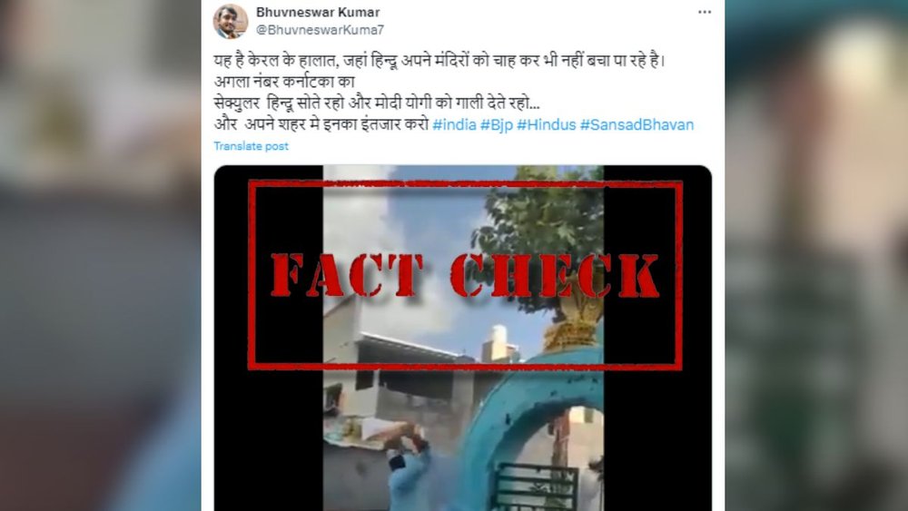 वीडियो के साथ दावा किया गया कि वीडियो में दिख रहा व्यक्ति एक मुस्लिम है जो मंदिर को तोड़ रहा है। जांच के दौरान हमने पाया कि यह दावा झूठा है। वीडियो में मंदिर नहीं बल्कि दरगाह को तोड़ा जा रहा है।