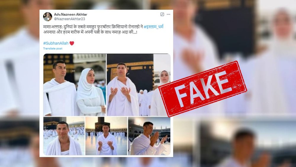 निष्कर्ष: फुटबॉलर क्रिस्टियानो रोनाल्डो और उनकी पत्नी की तस्वीरें इस दावे के साथ शेयर की जा रही हैं कि उन्होंने और उनकी पत्नी ने इस्लाम स्वीकार कर लिया है। ये तस्वीरें AI द्वारा बनाई गई हैं। वायरल दावा झूठा है।