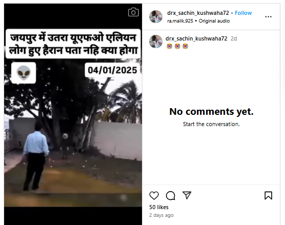 दावे में कहा गया है कि वीडियो में भारत के राजस्थान में एलियन को देखा गया है।