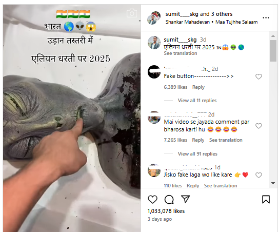 निष्कर्ष: भारत में एलियन के देखे जाने का दावा करने वाले ऑनलाइन शेयर किए गए वायरल वीडियो या तो असंबंधित हैं या अलग-अलग डिजिटल टूल का उपयोग करके बनाए गए हैं। वायरल दावे झूठे हैं।
