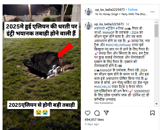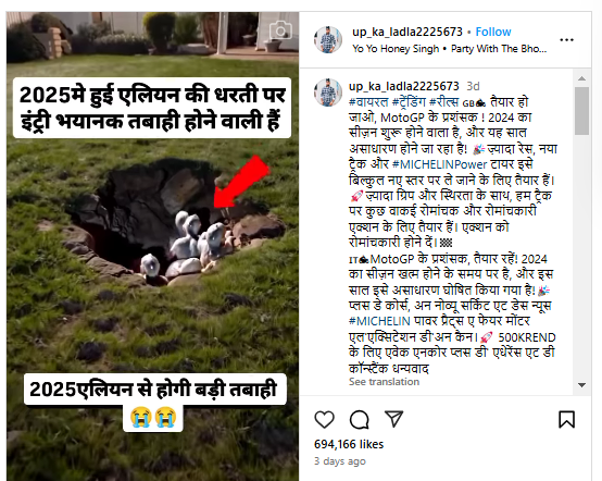 लाइटहाउस जर्नलिज्म ने पाया कि सोशल मीडिया प्लेटफ़ॉर्म पर कई वीडियो शेयर किए जा रहे हैं, जिनमें दावा किया जा रहा है कि दुनिया भर में, ख़ास तौर पर भारत में 2025 में एलियंस देखे गए हैं। जाँच के दौरान हमने पाया कि वीडियो फ़र्जी और असंबंधित थे। वायरल दावे फ़र्जी हैं।