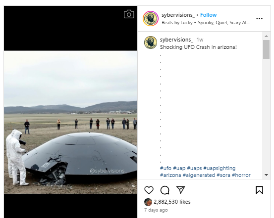उनके रील्स पर कुछ कैप्शन में लिखा था, “मैं एरिया 51 गया था”।