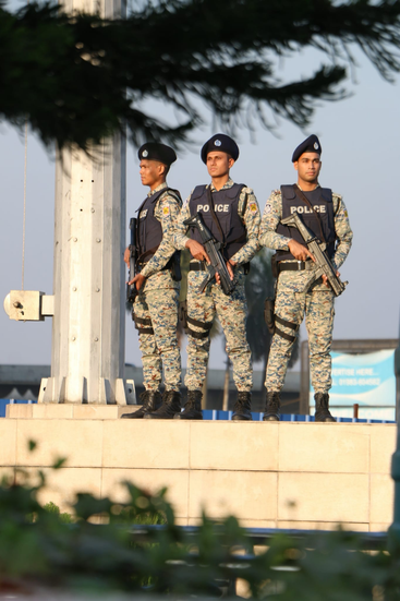 वर्दी पर ‘पुलिस’ लिखा हुआ था। हमने पाया कि यह वर्दी बांग्लादेश की एयरपोर्ट सशस्त्र पुलिस बटालियन की है। हमें इसकी कुछ तस्वीरें भी मिलीं।