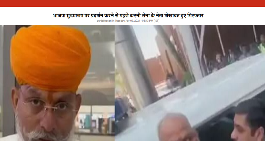 9 अप्रैल, 2024 को प्रकाशित रिपोर्ट में कहा गया है कि करणी सेना के नेता शेखावत को भाजपा मुख्यालय पर प्रदर्शन करने से पहले हिरासत में ले लिया गया था। रिपोर्ट में कहा गया है कि करणी सेना के नेता राज शेखावत, जो गांधीनगर में स्थित बीजेपी के गुजरात मुख्यालय का घेराव करने जा रहे थे, उन्हें मंगलवार को अहमदाबाद हवाई अड्डे के बाहर पुलिस ने हिरासत में ले लिया।
