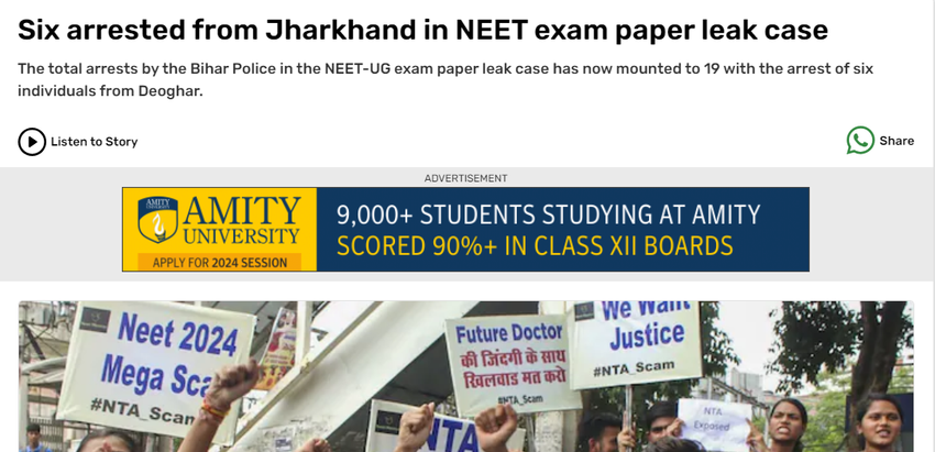 निष्कर्ष: एनईईटी मामले में छह आरोपियों को देवघर में झुनू सिंह के घर से गिरफ्तार किया गया था। कांग्रेस कार्यालय से आरोपियों की गिरफ्तारी नहीं हुई। वायरल दावा भ्रामक है।