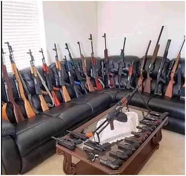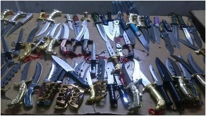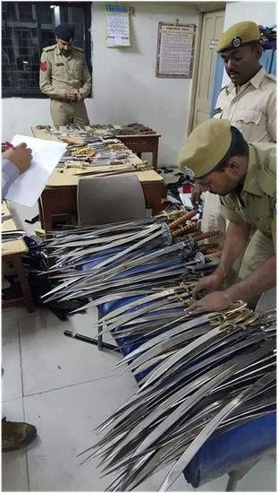 वायरल तस्वीर में हथियारों के समान एक स्टैश 5 मार्च, 2016 को प्रकाशित एक रिपोर्ट में गुजरात हेडलाइन द्वारा ली गई तस्वीर में टेबल पर देखा जा सकता है।