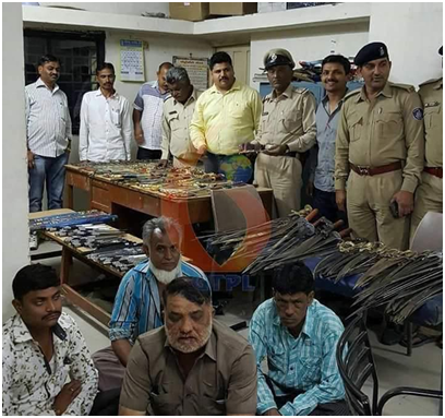 यह तस्वीर भी राजकोट डिटेक्शन ऑफ़ क्राइम ब्रांच (DCB) और कुवाडवा पुलिस के नेतृत्व में एक ऑपरेशन की थी। टीम ने एक अवैध हथियार व्यापार का भंडाफोड़ किया, जो राजकोट अहमदाबाद राजमार्ग पर चोटिला के पास एक होटल से संचालित किया जा रहा था, जैसा कि गुजरात हेडलाइन समाचार में बताया गया है। पृष्ठभूमि में वही टेबल दिखाई दे रही है, जो पहले की तस्वीरों में दिखाई दे रही थी।