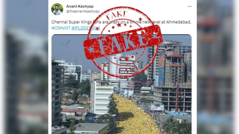 वायरल तस्वीरों का अहमदाबाद में हुए आईपीएल के फाइनल मैच और चेन्नई सुपर किंग्स से कोई संबंध नहीं है।