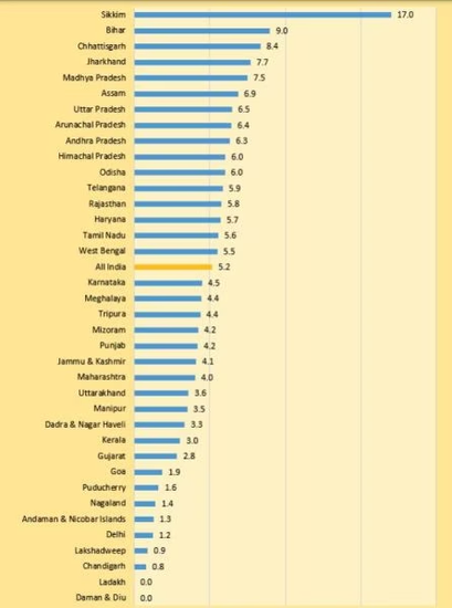 सिक्किम में मृत्यु दर सबसे अधिक, लद्दाख, दमन और दीव में सबसे कम