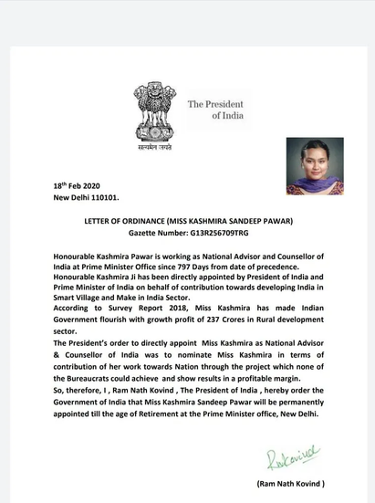 महाराष्ट्र की एक ठग महिला के PMO ऑफिस से लेकर NSA अजीत डोभाल तक पहुंच की खबरें कुछ दिनों पहले मीडिया में चर्चा का विषय थीं। दिसंबर 2017 में मीडिया ने महाराष्ट्र के सतारा जिले की एक महिला की प्रधानमंत्री कार्यालय के राष्ट्रीय सलाहकार के रूप में नियुक्ति की सूचना दी थी। बताया गया था कि वह पीएम नरेंद्र मोदी से डायरेक्ट बात करती है। सतारा पुलिस ने बुधवार को कश्मीरा और उसके साथी गणेश गायकवाड़ को धोखाधड़ी और जालसाजी के आरोप में गिरफ्तार किया था।