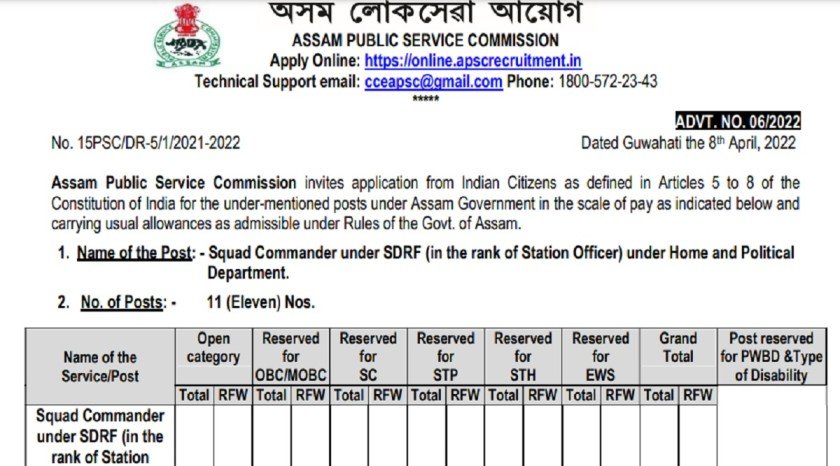 APSC Recruitment 2022: असम लोक सेवा आयोग (APSC) ने अपनी आधिकारिक वेबसाइट पर कई पदों के लिए ऑनलाइन आवेदन आमंत्रित किया है। इसके माद्यम से क्वाड कमांडर और स्टेशन अधिकारी के विभिन्न पदों पर भर्ती की जाएगी। उम्मीदवार इन पदों के लिए 12 मई 2022 तक या उससे पहले आवेदन कर सकते हैं।