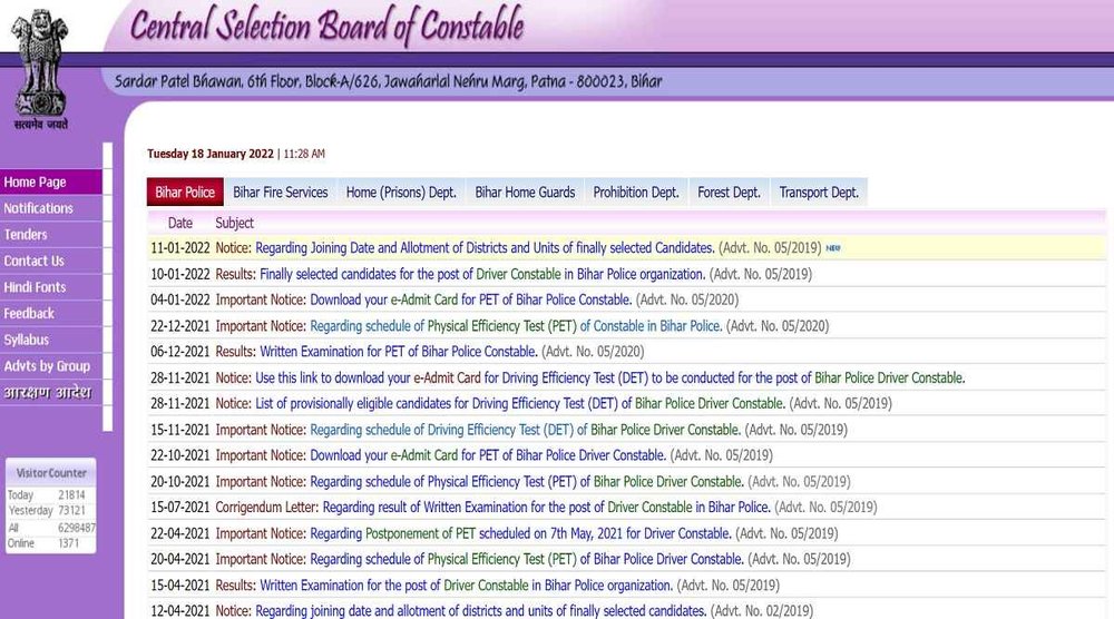 स्टेप 2- होम पेज पर Bihar Police सेक्शन में जाएं।