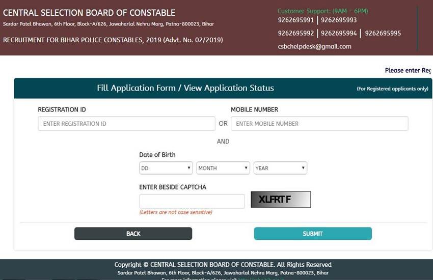 बिहार पुलिस कांस्टेबल भर्ती के लिए ऑनलाइन आवेदन प्रक्रिया 5 अक्टूबर, 2019 को शुरू हुई। बिहार पुलिस कांस्टेबल भर्ती के लिए ऑनलाइन आवेदन पत्र जमा करने की अंतिम तिथि 04 नवंबर, 2019 थी। एडमिट कार्ड अब लगभग 4 महीने के इंतजार के बाद जारी किया गया है।