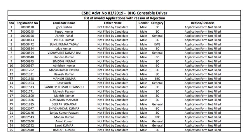जानिए कैसे देखें रद्द हुए आवेदनों की पूरी सूची: इस लिस्ट के मुताबिक रिजेक्ट होने वाले आवेदकों की संख्या 324 है। जिन आवेदकों ने इस भर्ती के लिए रजिस्ट्रेशन कराया था, वे आवेदक Bihar Police Home Guard Driver Rejected List 2019 डाउनलोड करने के लिए सीएसबीसी की आधिकारिक वेबसाइट csbc.bih.nic.in या https://csbc.bih.nic.in/Advt/Notice-28-11-2019.pdf पर विजिट करें।