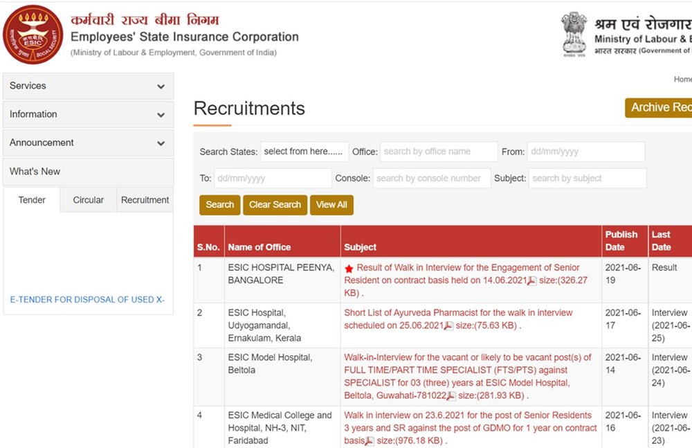 ESIC Recruitment 2021: एम्प्लॉयज स्टेट इंश्योरेंस कॉरपोरेशन (ESIC), फरीदाबाद ने ईएसआईसी मेडिकल कॉलेज और हॉस्पिटल, एनआईटी फरीदाबाद में सीनियर रेजिडेंट और अन्य पदों पर भर्ती के लिए एक नोटिफिकेशन जारी किया है। योग्य उम्मीदवार 23 जून 2021 को आयोजित इंटरव्यू में शामिल हो सकते हैं।