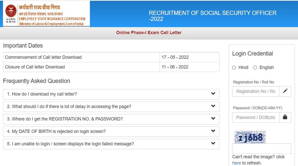 How to download ESIC SSO Preliminary Exam Admit Card 2022