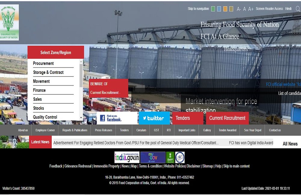 आवेदन प्रक्रिया: इन पदों पर आवेदन करने के लिए उम्मीदवारों को ऑफिशियल वेबसाइट fci.gov.in के माध्यम से आवेदन करना होगा। एफसीआई के लिए ऑनलाइन पंजीकरण प्रक्रिया 1 मार्च, 2021 से शुरू होगी। आवेदन करने की अंतिम तिथि 31 मार्च, 2021 है। इन पदों पर उम्मीदवारों का चयन ऑनलाइन टेस्ट और इंटरव्यू के आधार पर किया जाएगा।