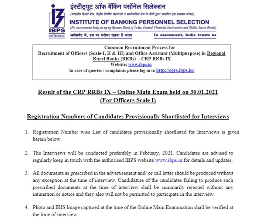 IBPS CRP RRB IX Officer Scale-1 Recruitment Interview Call Letter 2021: इंस्टीट्यूट ऑफ बैंकिंग पर्सनेल सेलेक्शन (IBPS), क्षेत्रीय ग्रामीण बैंकों (RRBs) ने IBPS RRB PO Mains स्कोर कार्ड और साक्षात्कार में चयनित होने वाले उम्मीदवारों की सूची जारी करने के बाद, इंटरव्यू कॉल लेटर भी अपलोड कर दिया है। जो उम्मीदवार, CRP RRB IX के तहत ऑफिसर स्केल-1 असिस्टेंट मैनेजर (PO) के पद के लिए ऑनलाइन मुख्य परीक्षा में उपस्थित हुए थे, वे अब आईबीपीएस की आधिकारिक वेबसाइट ibps.in या ibpsonline.ibps.in पर जाकर अपना स्कोर कार्ड और एडमिट कार्ड चेक करके डाउनलोड कर सकते हैं। स्कोर कार्ड 20 फरवरी 2021 और इंटरव्यू के लिए एडमिट कार्ड 01 मार्च 2021 तक ऑनलाइन उपलब्ध रहेगा।