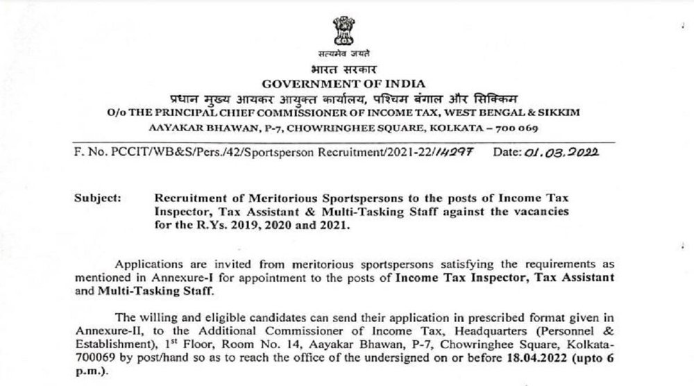 बता दें कि आयकर विभाग ने कुल 24 रिक्त पदों पर भर्तियों के आवेदन मांगे हैं। इन पदों पर भर्तियां स्पोर्ट्स कोटे के तहत निकाली गई हैं।