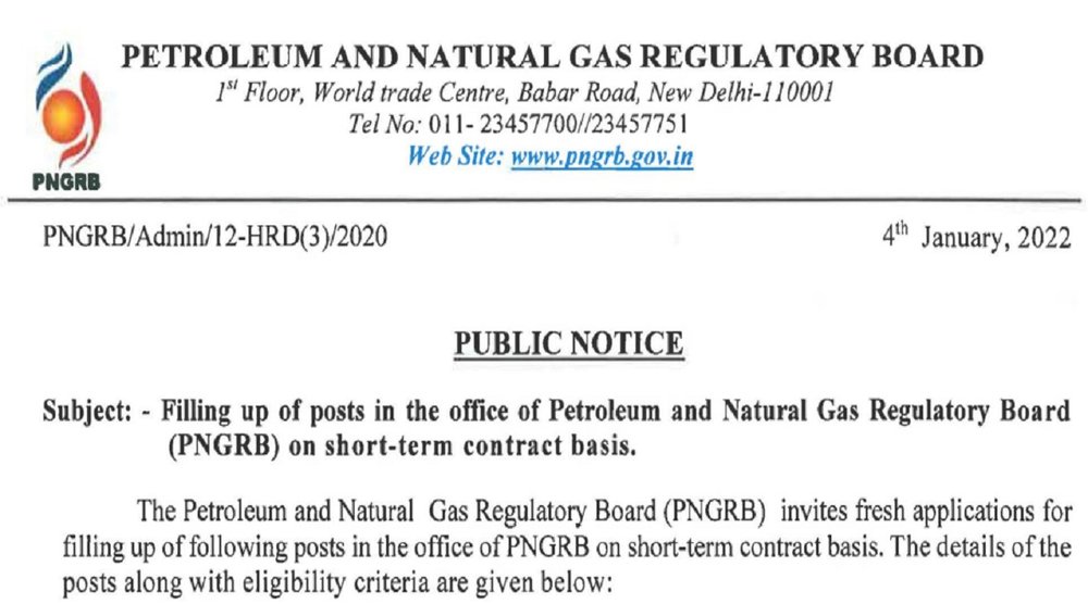 PNGRB Recruitment 2022: पेट्रोलियम और प्राकृतिक गैस नियामक बोर्ड (पीएनजीआरबी) प्राइवेट सेक्रेटरी, पर्सनल असिस्टेंट, कैशियर, असिस्टेंट कम डाटा एंट्री ऑपरेटर और सीनियर सेक्रेटरी असिस्टेंट के पदों पर भर्ती के लिए एक अधिसूचना प्रकाशित की है।