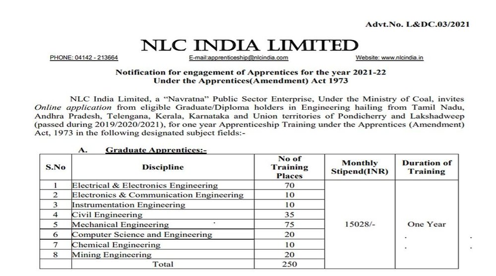 NLC Apprentice Recruitment 2022: एनएलसी इंडिया लिमिटेड ने अपरेंटिस के विभिन्न पदों पर भर्ती निकाली है। इस भर्ती के तहत 550 रिक्त पदों को भरा जाएगा। इच्छुक और योग्य उम्मीदवार एनएलसी की आधिकारिक वेबसाइट nlcindia.in पर विजिट करके आवेदन कर सकते हैं।