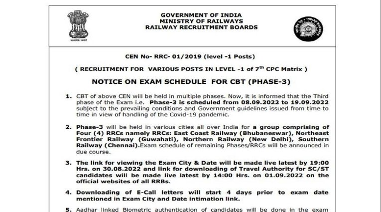 RRB Group D Phase 3 Exam 2022 Date: अभ्यर्थी आधिकारिक वेबसाइट rrbcdg.gov.in पर जारी परीक्षा शेड्यूल को चेक कर सकते…