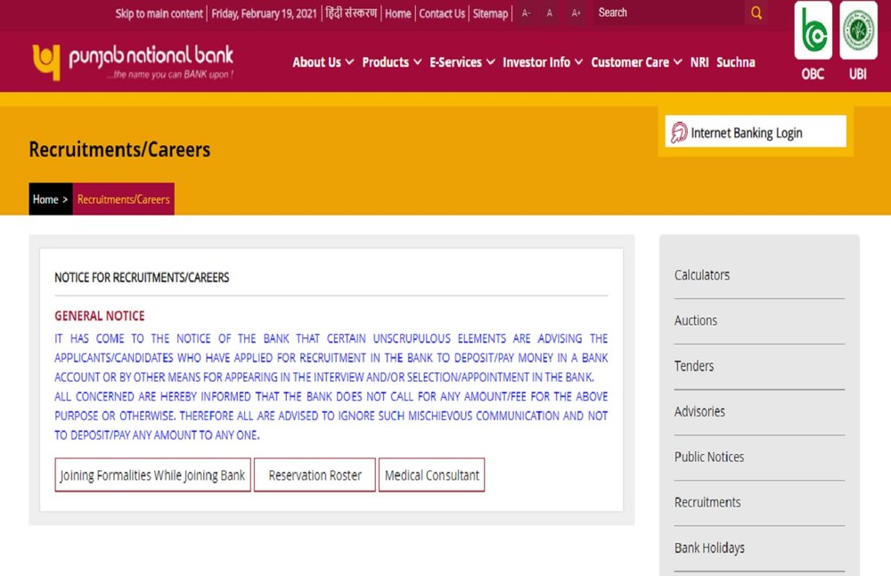 आवेदन प्रक्रिया: इच्छुक और योग्य उम्मीदवार 04 मार्च 2021 को या उससे पहले निर्धारित आवेदन प्रारूप के माध्यम से पंजाब नेशनल बैंक भर्ती अधिसूचना 2021 के लिए आवेदन कर सकते हैं। उपरोक्त पात्रता मानदंड को पूरा करने वाले व्यक्ति अपना विधिवत हस्ताक्षरित आवेदन भेज सकते हैं।