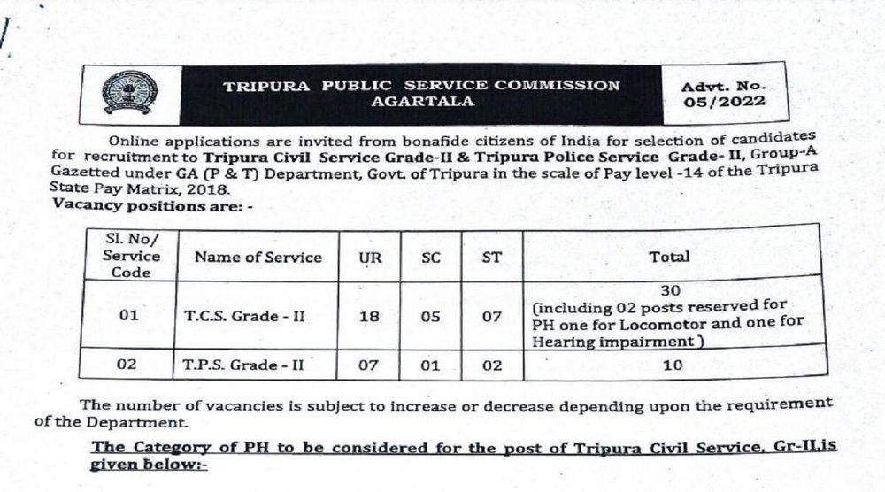 त्रिपुरा सिविल सर्विस ग्रेड 2 – 30
